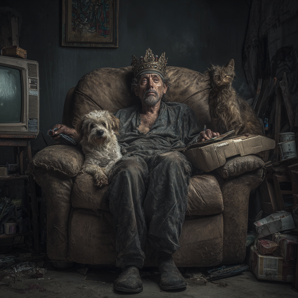 Völlerei feiert und verdammt zugleich das Maßlose. Dark7Studio inszeniert diese Sünde als opulentes Festmahl am Abgrund. Die Gemälde prangen in satten Ölschichten: Üppige Tafeln, überquellende Früchte, Kelche, die im Überschwang verschüttet werden – doch zwischen dem Reichtum an Farbe und Form blitzen Morbidität und Überdruss hervor. In manchem Bild spürt man den Nachhall von Vanitas-Stillleben: eine Fliege auf der üppigen Frucht, ein Totenschädel zwischen den Speisen – Memento Mori im Rausch der Fülle. Andere Darstellungen treiben die Groteske auf die Spitze, karikieren die Maßlosigkeit mit verzerrten Figuren, die sich an Essen und Trinken klammern als gäbe es kein Morgen. Die Sprache der Völlerei ist laut und schillernd: ausgelassenes Gelächter, lallende Stimmen im Hintergrund – ein chaotisches Gelage in Worten. Musikalisch wird dies untermauert von einem prunkvollen, aber zerzausten Klangmix: Stell dir ein Orchester vor, das trunken einen Walzer spielt, während im Hintergrund ein wilder Jazz-Bass und Kabarett-Trompeten durcheinanderwirbeln. Diese kakophone, fast carnivaleske Musik fängt die hemmungslose Fröhlichkeit ein, die bald ins Umkippen droht. Der Klang überschäumt, bis der letzte Akkord schließlich in Stille verfällt – ein akustischer Kater nach dem Exzess, der den Zuhörer mit einem Gefühl von Leere und schmerzhaft süßer Erinnerung zurücklässt.