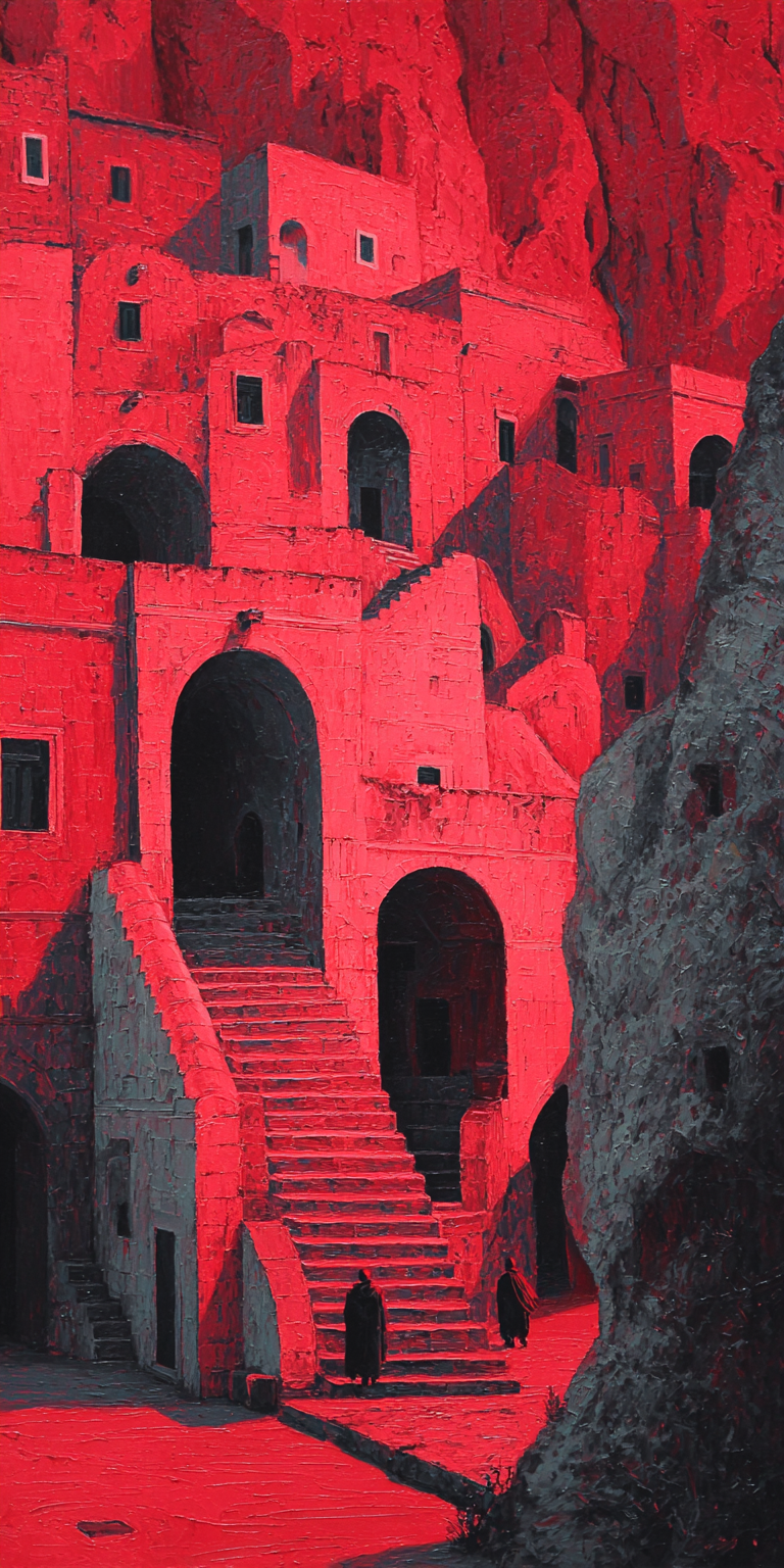 Zwei Tafeln als Dialog von offenem Raum (Weiß) und pulsierender Dichte (Rot). QR-Code vor Ort führt zum eigens komponierten Track „Two Shores“. Zielzeitraum: 21. September 2026 (Independence Day). Leihgabe 12–24 Wochen, auf Wunsch Touring zu einem maltesischen Kulturverein.